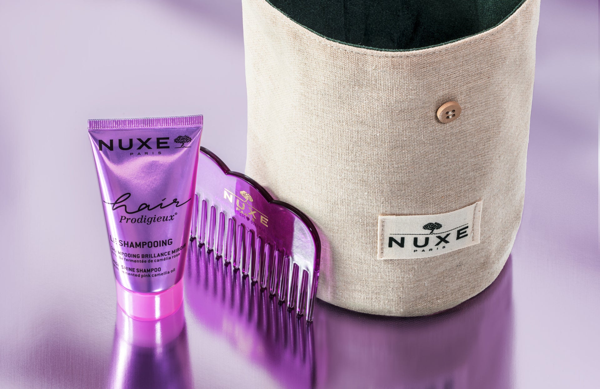 (2) Un peigne NUXE (dimensions : 9,5 x 5,8 cm, matériaux : Organic Acetate) et un shampooing Hair Prodigieux® 30ml offerts dès 60€ d'achat à partir du 1er septembre 2025 sur le site be.nuxe.com, jusqu'à écoulement du stock disponible (hors e-cartes cadeaux). Offre non cumulable avec toute autre offre NUXE en cours et valable en Belgique. Photographies non contractuelles.