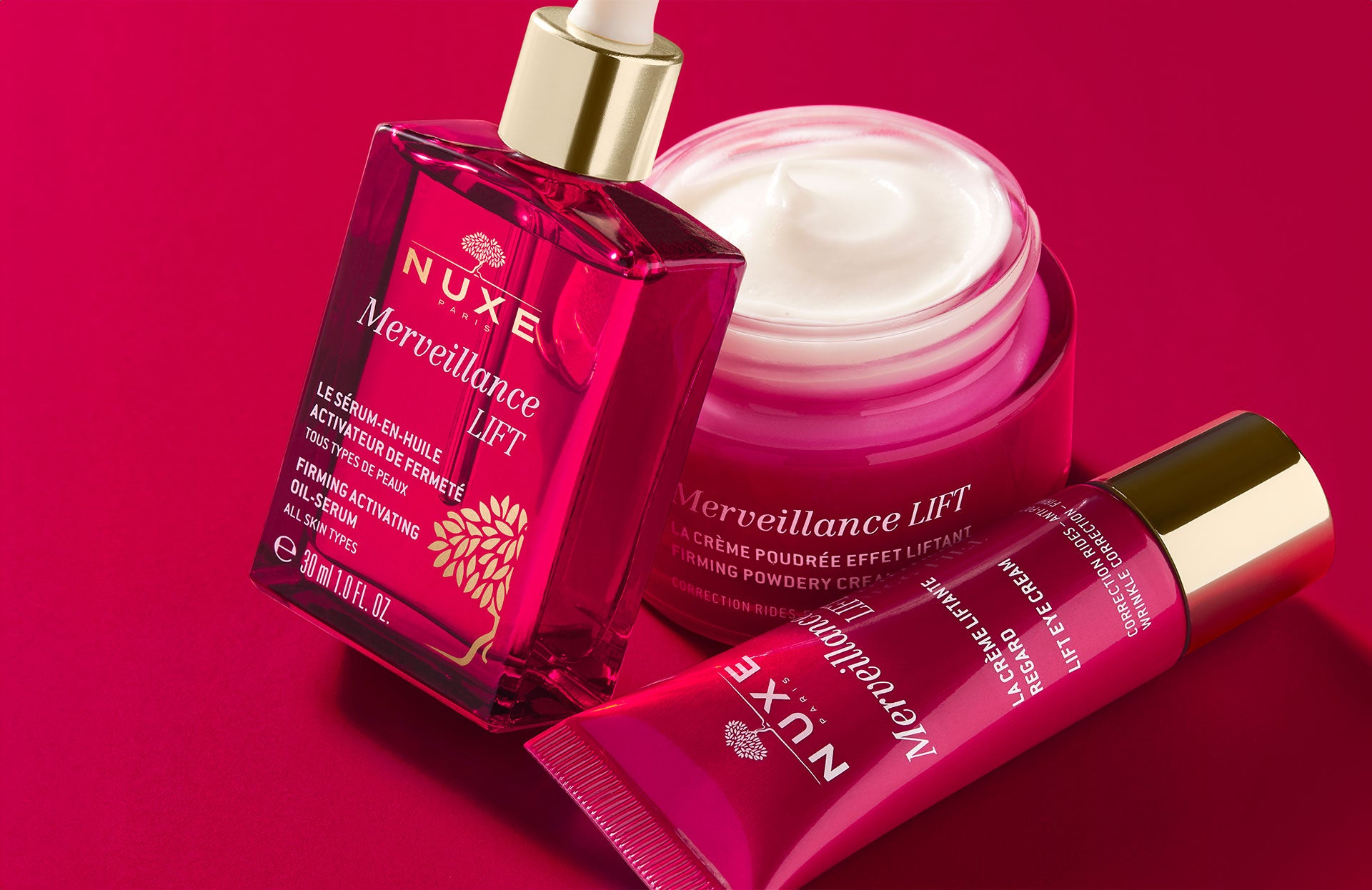 NUXE Research identified the effectiveness of Mimosa seeds in an anti-wrinkle product, a patented innovation that led to the creation of Merveillance. Over the next 15 years, the range continued to reinvent wrinkle correction. In 2021, NUXE introduced Merveillance LIFT, a skincare product infused with micro-algae oil.