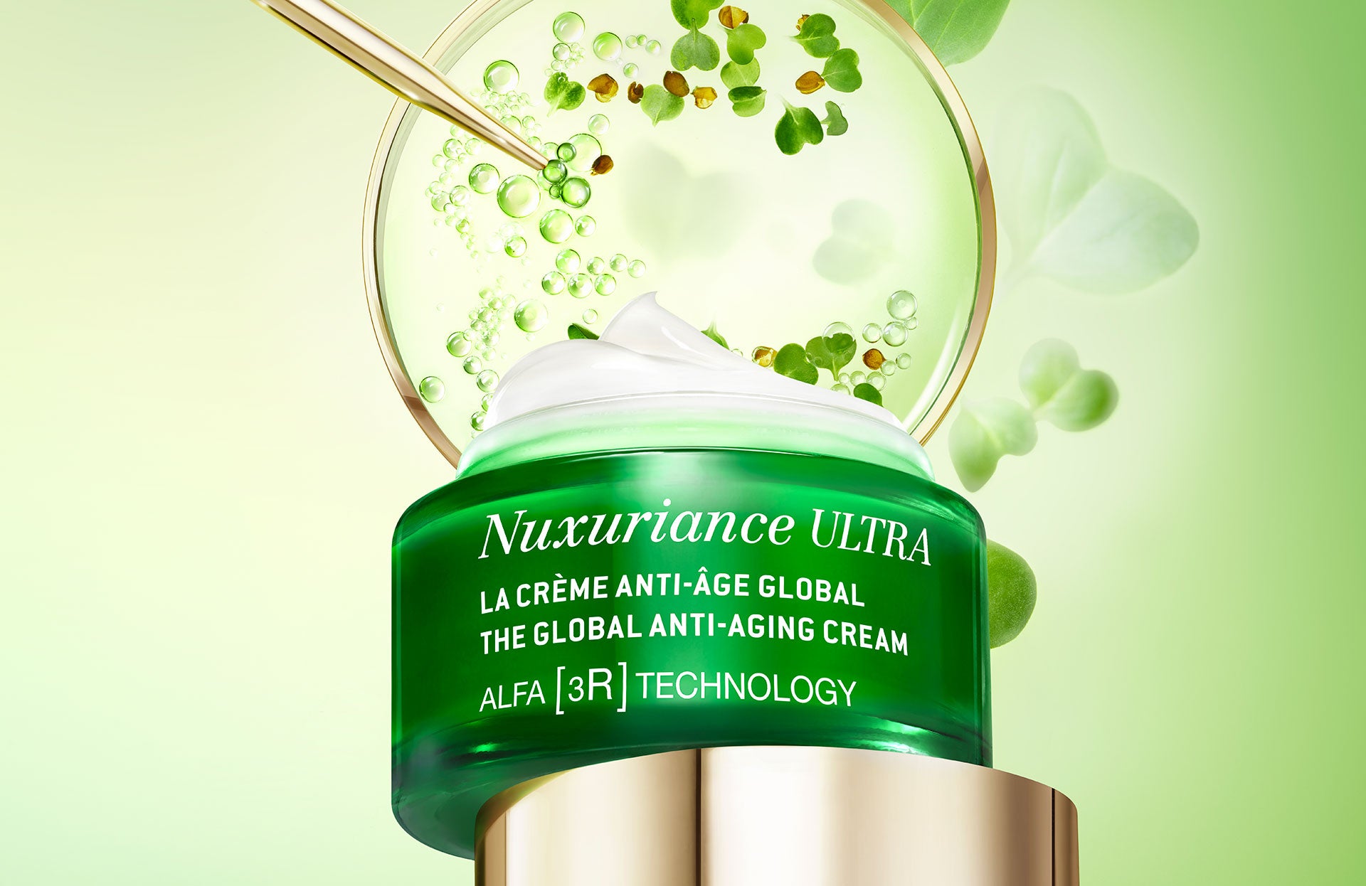 The laboratory confirms its excellence in facial care with this global anti-ageing innovation based on patented plant ingredients. It offers demanding women proven effectiveness on skin density and blemishes. In 2024, the range became Nuxuriance Ultra Alfa [3R], incorporating a technology more effective than retinol ⁽⁷⁾ on 3 actions on the skin. The ultimate in anti-ageing.