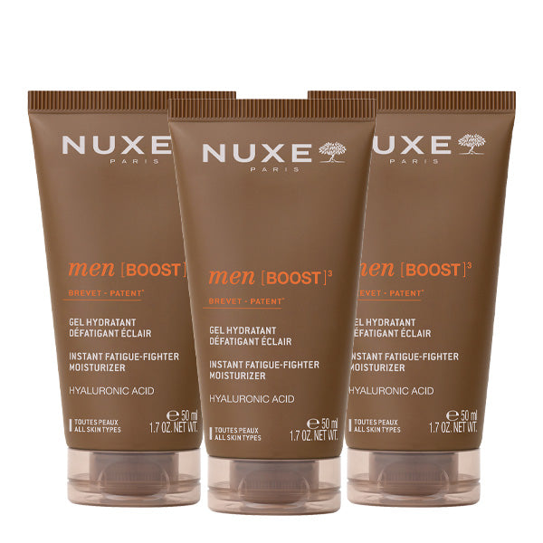 NUXE Men [BOOST]³, the expert range that combines effectiveness and sensoriality to reveal the full strength of your skin. It hydrates, energizes, and protects your skin from external aggressions (wind, cold, pollution...) daily. Enriched with patented ash bark oleo-extract.