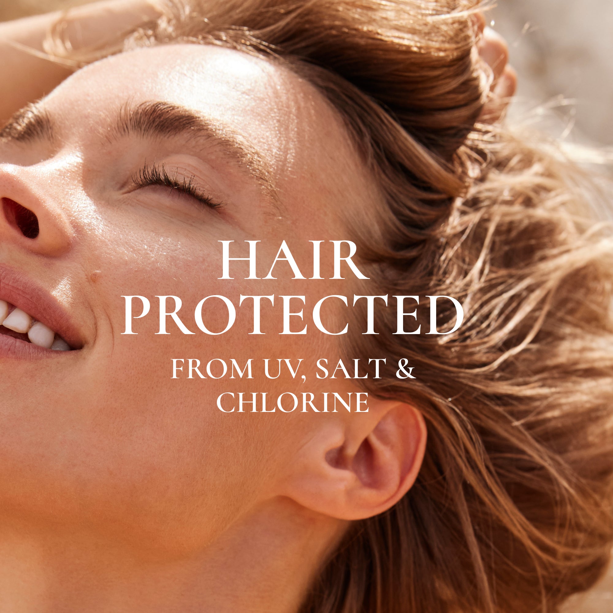 Protective effect against 99.5% of damage caused by salt, chlorine and sand ⁽²⁾ Its practical mist application leaves an ultra-light, non-greasy veil that beautifies your hair making it feel heavy. Its evocative holiday scent with notes of sweet Orange, Tiare Flower and Vanilla is an irresistible invitation to enjoy that summer feeling.