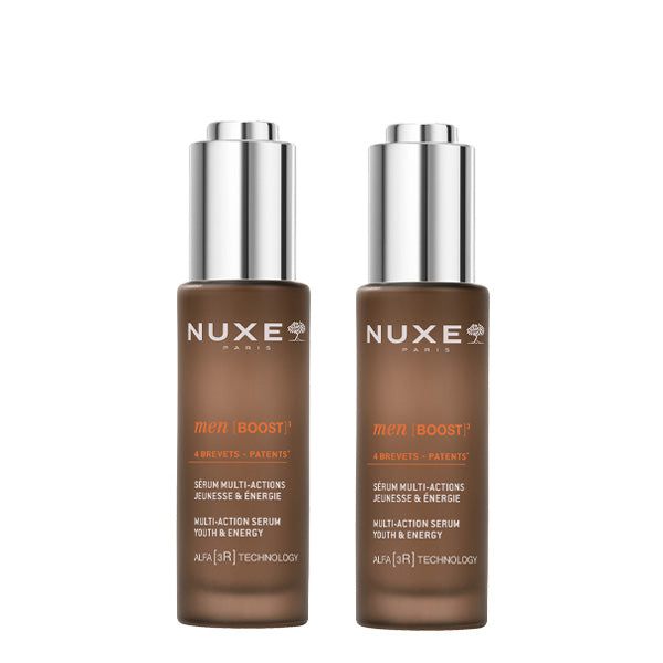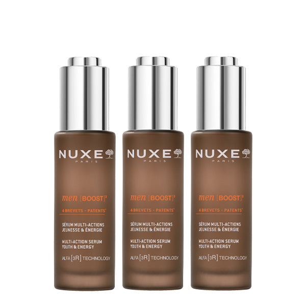 NUXE Men [BOOST]³, the expert range that combines effectiveness and sensoriality to reveal the full strength of your skin. Enriched with patented ash bark oleo-extract. Additionally, the ALFA [3R] TECHNOLOGY⁽¹⁾, more effective than retinol⁽²⁾, revitalizes, renews, and resurfaces the skin.