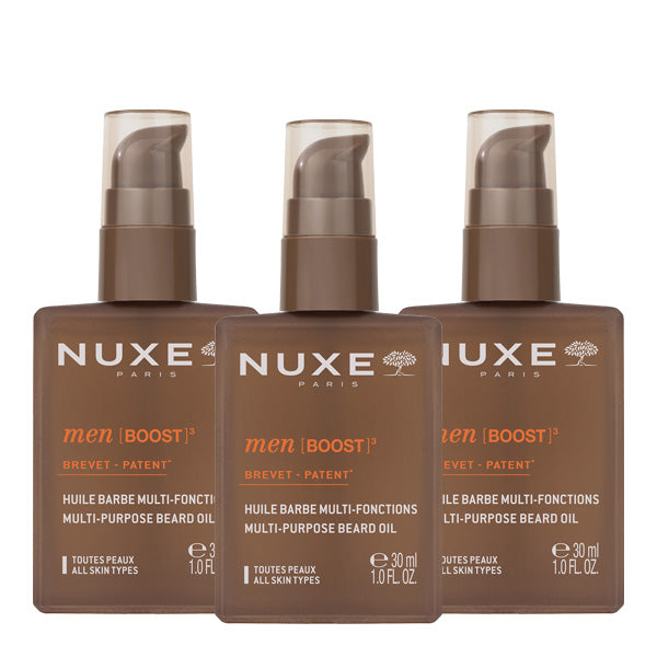 NUXE Men [BOOST]³, the expert range that combines effectiveness and sensoriality to reveal the full strength of your skin. It hydrates, energizes, and protects your skin from external aggressions (wind, cold, pollution...) day after day. Enriched with patented ash bark oleo-extract.