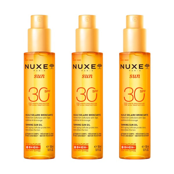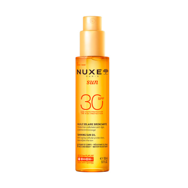 This Sun Tanning Oil SPF30 for face and body offers broad-spectrum protection against UVA and UVB rays while preventing premature skin photoageing thanks to its reinforced effectiveness against UVA⁽²⁾ rays. Its water-resistant and non-comedogenic formula is suitable for all skin types.